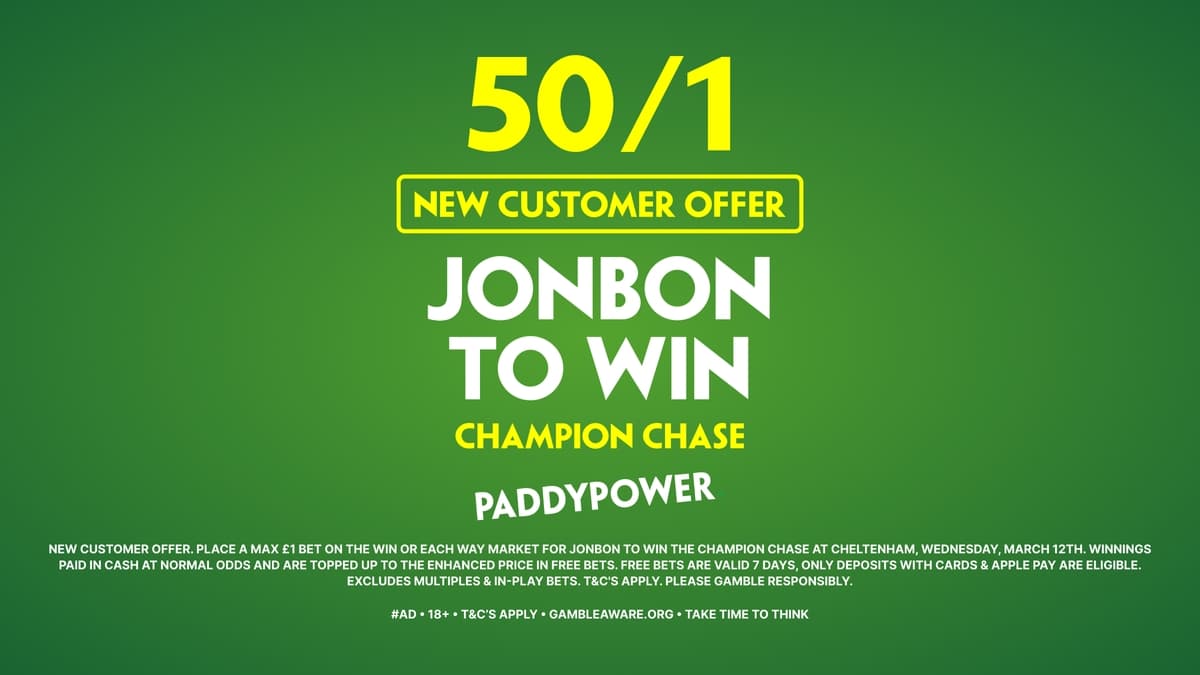 Paddy Power have raised the stakes for this race with an irresistible enhanced odds offer. New customers can seize this exclusive deal to earn massively boosted odds: Jonbon to win @50/1.