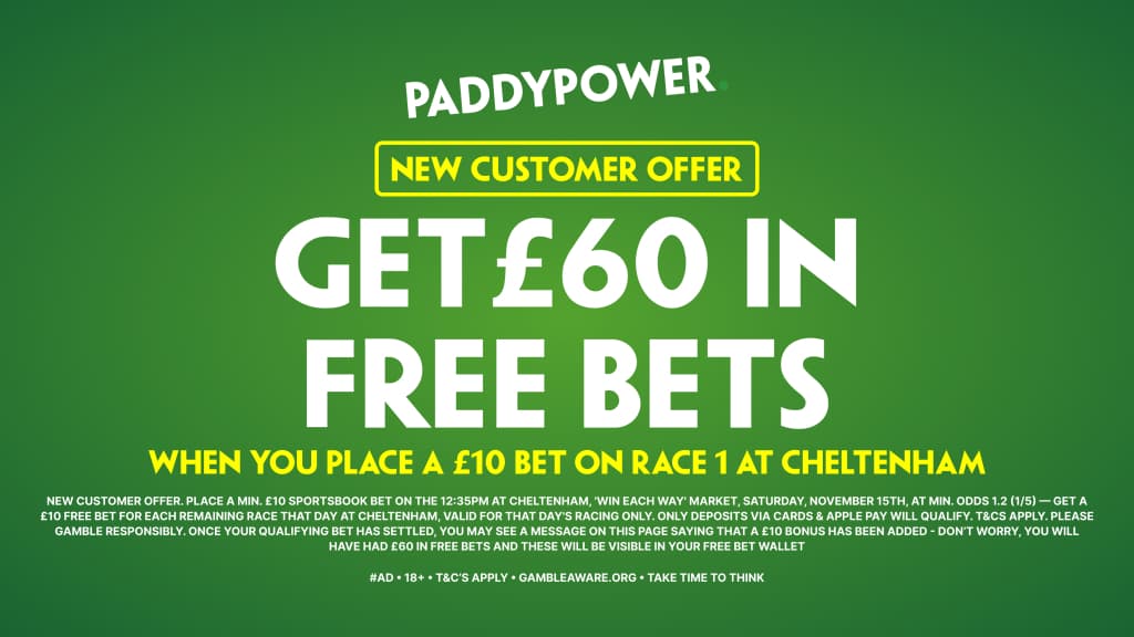 Cheltenham's November Meeting kicks off on Friday 14th November, and to celebrate, Paddy Power has an incredible sign up offer for new customers. If you're looking for a great deal for Cheltenham on Saturday you can get £60 in free bets when you place your first bet of just £10 on the first race at 12.35. This is a fantastic way to get started with Paddy Power and enjoy the top-class racing action.