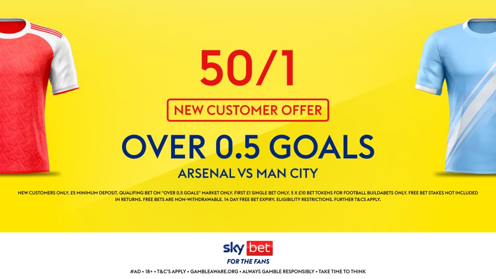OVER 0.5 GOALS IN ARSENAL VS. MAN CITY @ 50/1